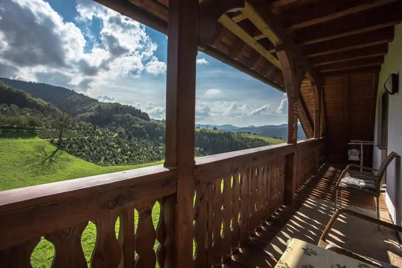 Die Higlights dieser Ferienwohnung sind das Panoramafenster und der Balkon unter dem Walmdach - mit Sicht auf die Weide und ins grüne Tal.